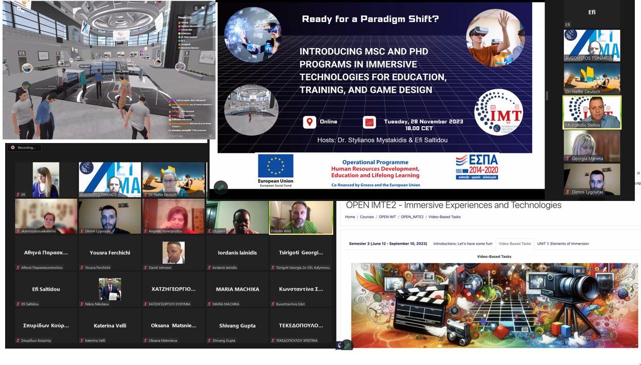 Thank you Dr Stylianos Mystakidis & Mrs Efi Saltidou for hosting the event and to Dr Nellie Deutsch and Fridolin Wild for their valuable inputs as Instructors of IMT MSc in Immersive Technologies. Special thanks to all the IMT Students and Graduates for sharing their success stories !!!